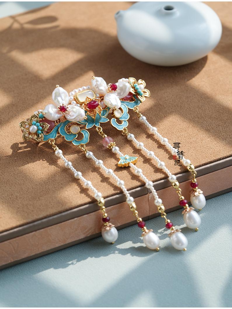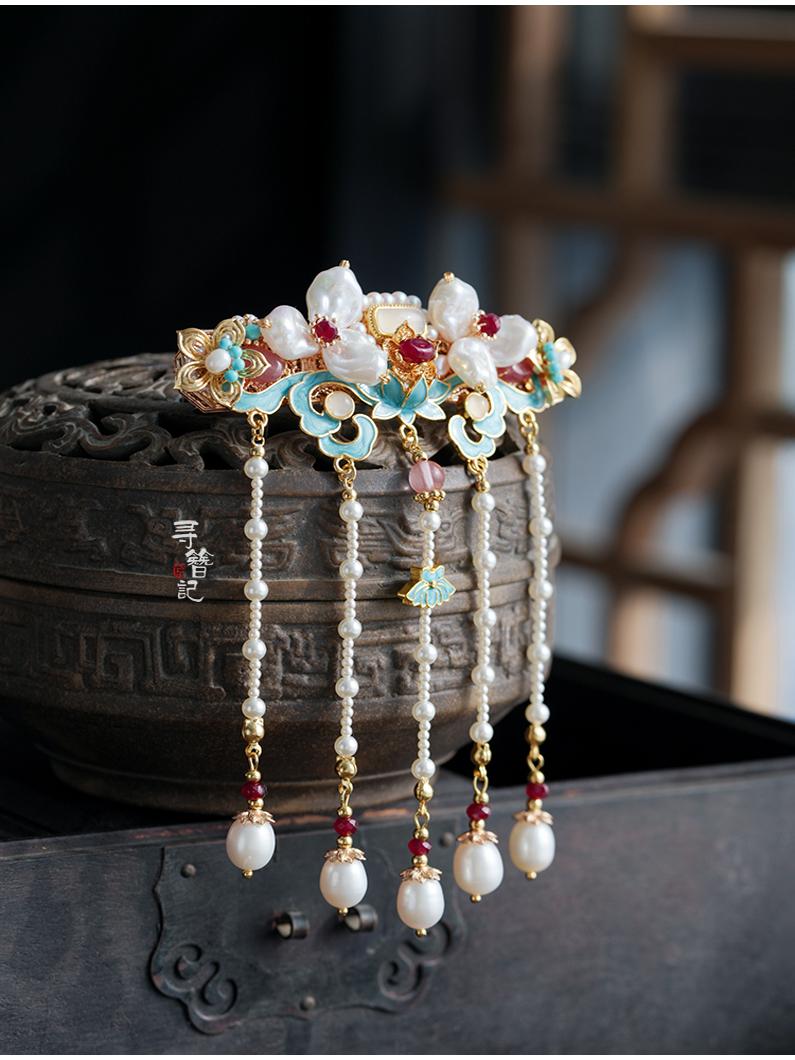Hanfu hair accessories can vary widely in style, material, and design, but they all serve the purpose of enhancing the wearer's appearance and adding an extra touch of elegance to their hair. Some notable hair accessories commonly associated with Hanfu are hairpins (发簪, fāzān), hair combs (发篦, fābì), tassels (流苏, liúsū), hair ornaments (发髻, fājì), hairbands and headpieces (发饰, fāshì).