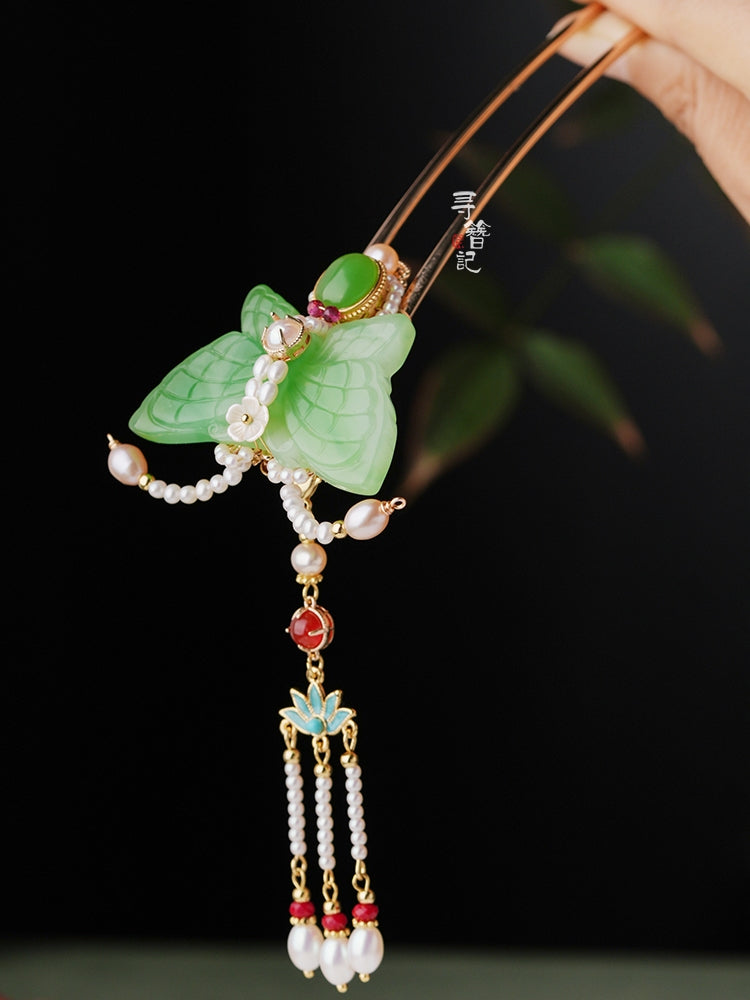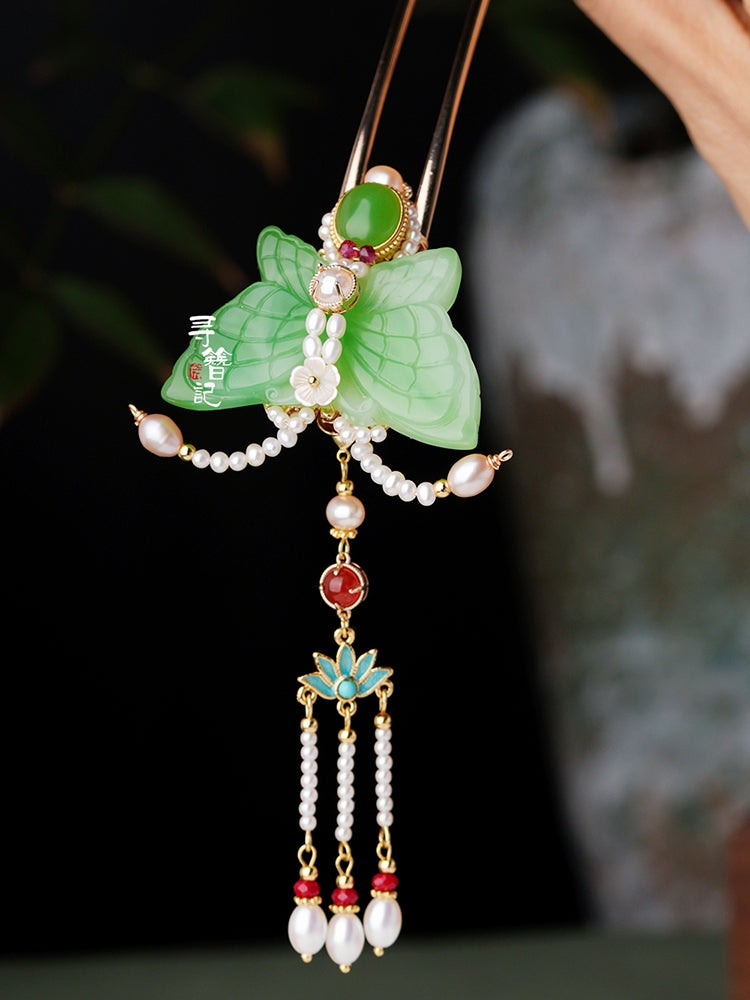 Hanfu hair accessories can vary widely in style, material, and design, but they all serve the purpose of enhancing the wearer's appearance and adding an extra touch of elegance to their hair. Some notable hair accessories commonly associated with Hanfu are hairpins (发簪, fāzān), hair combs (发篦, fābì), tassels (流苏, liúsū), hair ornaments (发髻, fājì), hairbands and headpieces (发饰, fāshì).