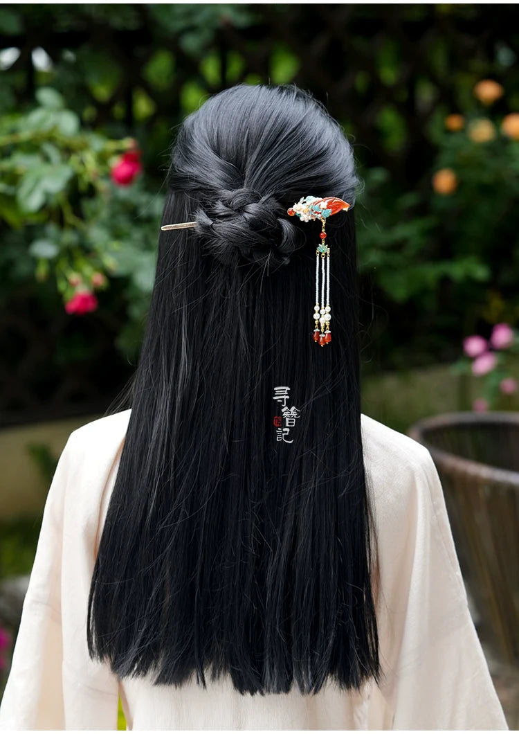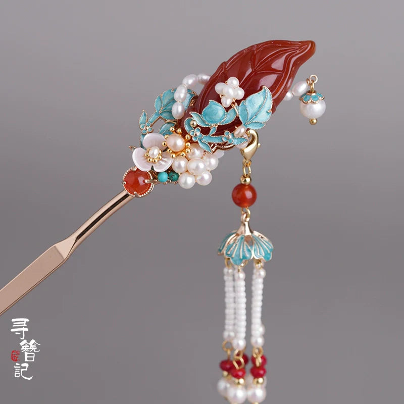 Hanfu hair accessories can vary widely in style, material, and design, but they all serve the purpose of enhancing the wearer's appearance and adding an extra touch of elegance to their hair. Some notable hair accessories commonly associated with Hanfu are hairpins (发簪, fāzān), hair combs (发篦, fābì), tassels (流苏, liúsū), hair ornaments (发髻, fājì), hairbands and headpieces (发饰, fāshì).
