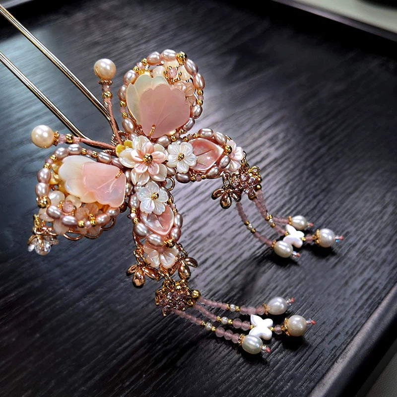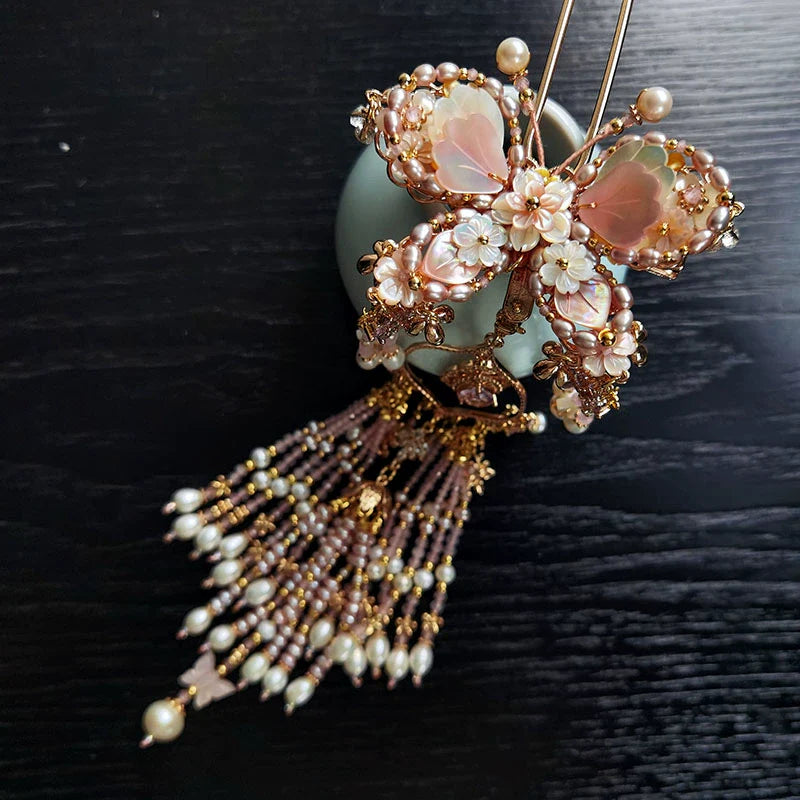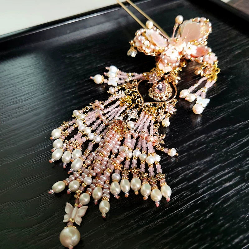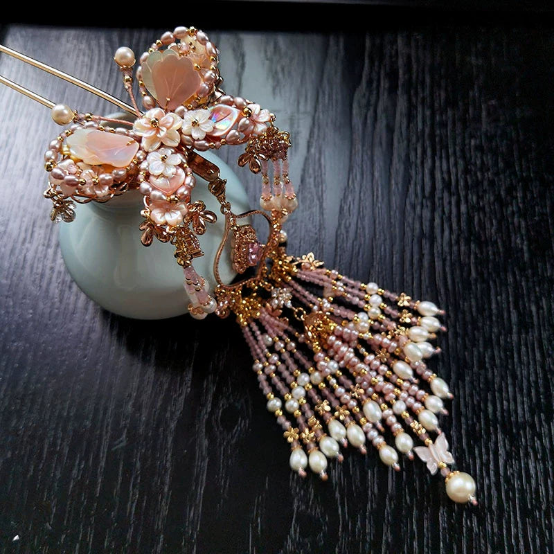 Hanfu hair accessories can vary widely in style, material, and design, but they all serve the purpose of enhancing the wearer's appearance and adding an extra touch of elegance to their hair. Some notable hair accessories commonly associated with Hanfu are hairpins (发簪, fāzān), hair combs (发篦, fābì), tassels (流苏, liúsū), hair ornaments (发髻, fājì), hairbands and headpieces (发饰, fāshì).