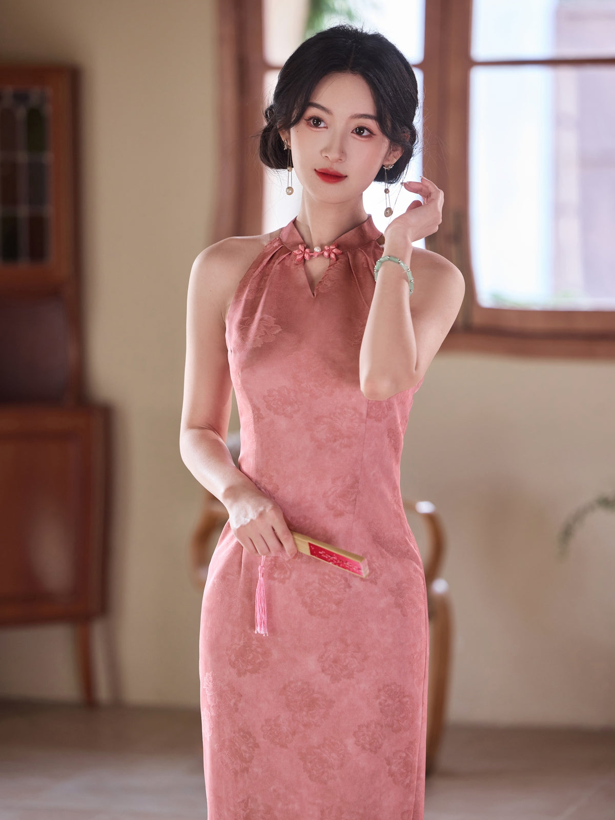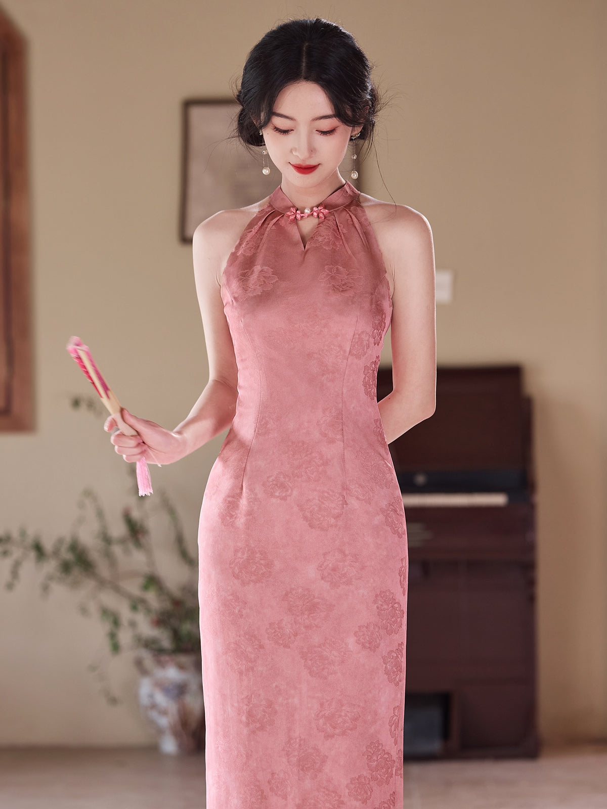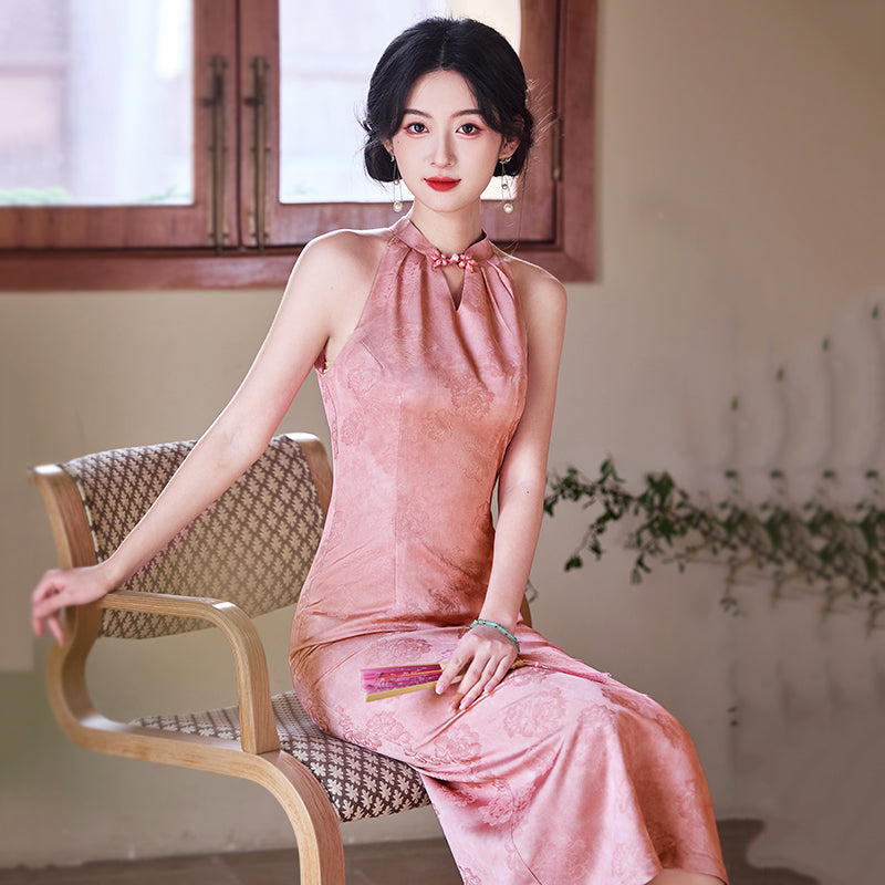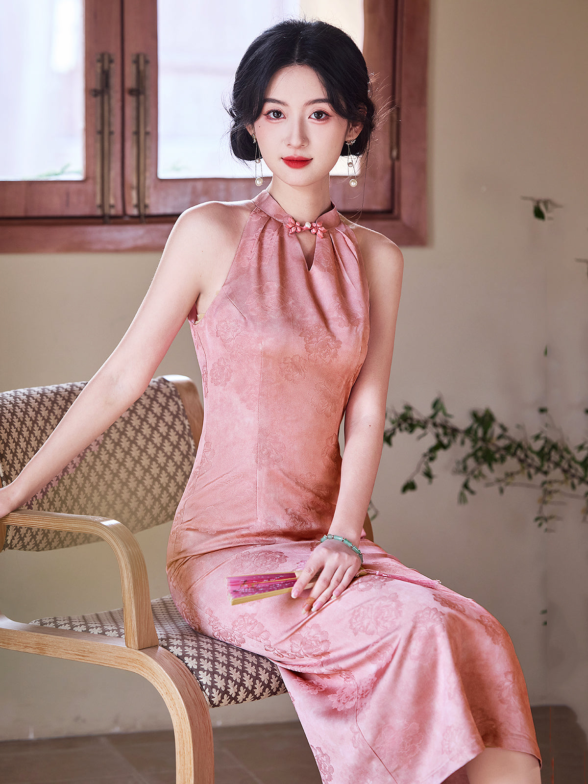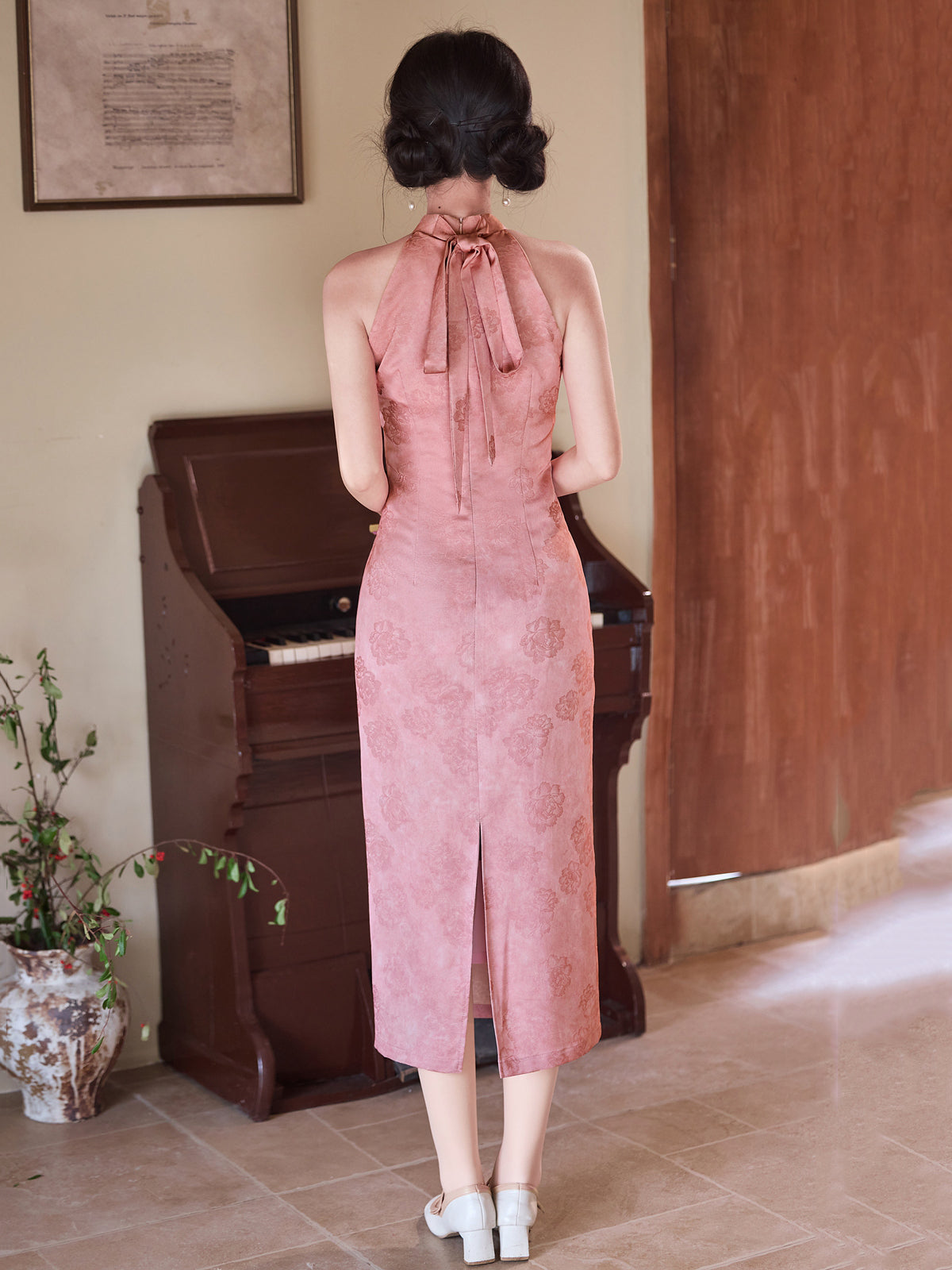 The Beauty - Pink Halter Neck Midi Cheongsam