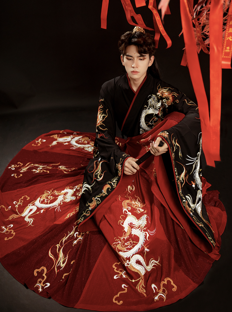 Crafted with over 300,000 intricate stitches, this masterpiece showcases elegant dragon embroidery in the timeless Wei-Jin style. It is a true work of art that merges ancient tradition with unparalleled craftsmanship.