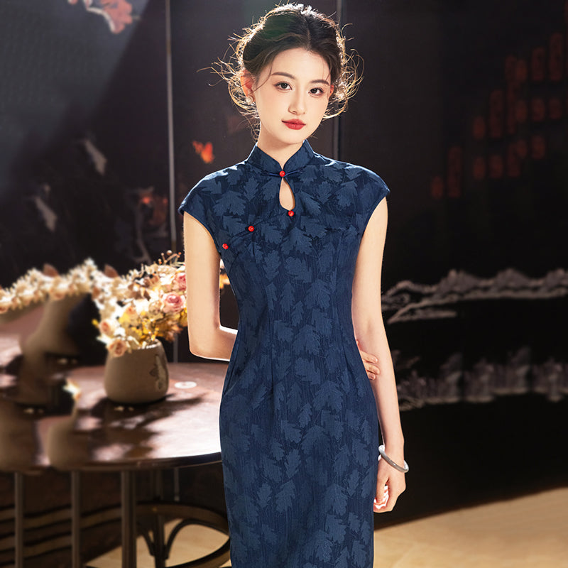 Tibetan Blue - Sleeveless Blue Midi Cheongsam