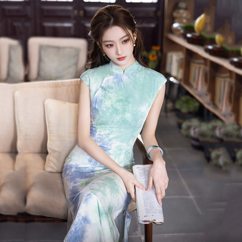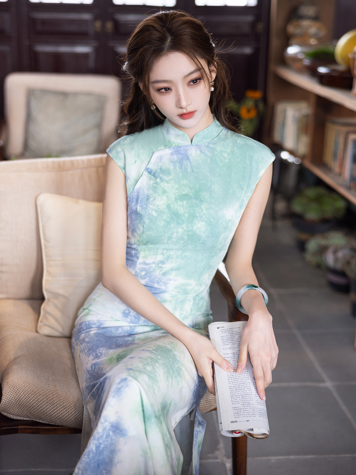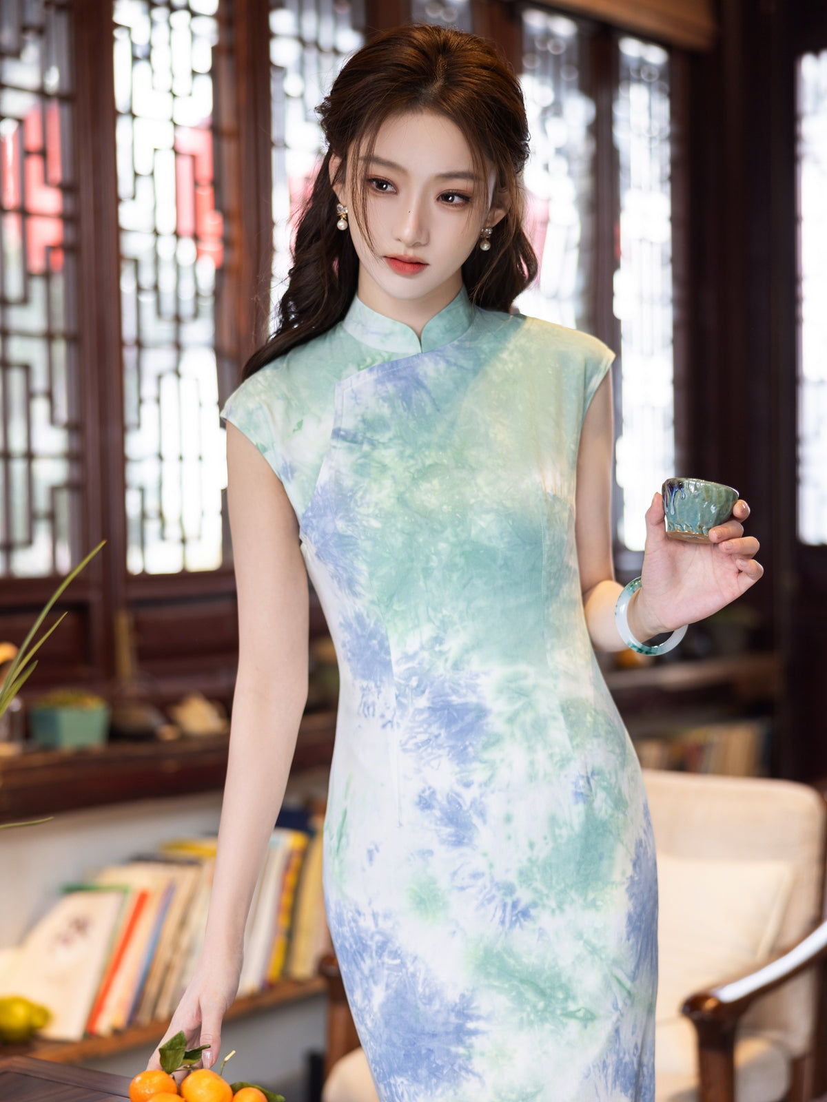 Tiffany - Sleeveless Sky Blue Cheongsam
