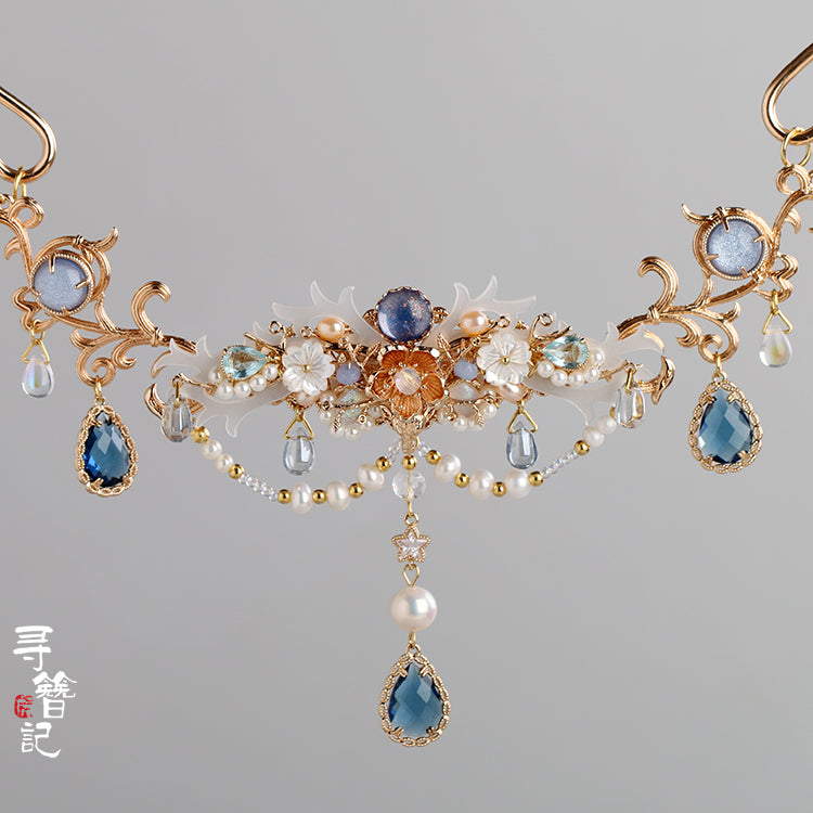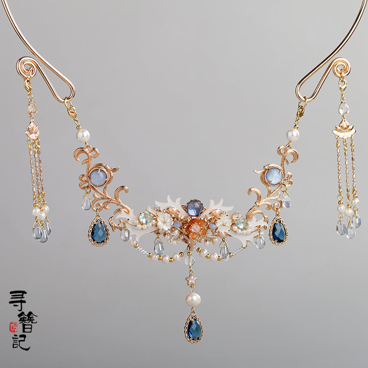 Yingluo 璎珞, also known as Huaman 华鬘, is a Han Chinese Traditional Accessory. Made of a variety of small flowers ornaments, it was introduced to China with Buddhism in the Han Dynasty. In modern context, one can relate it to a necklace.
