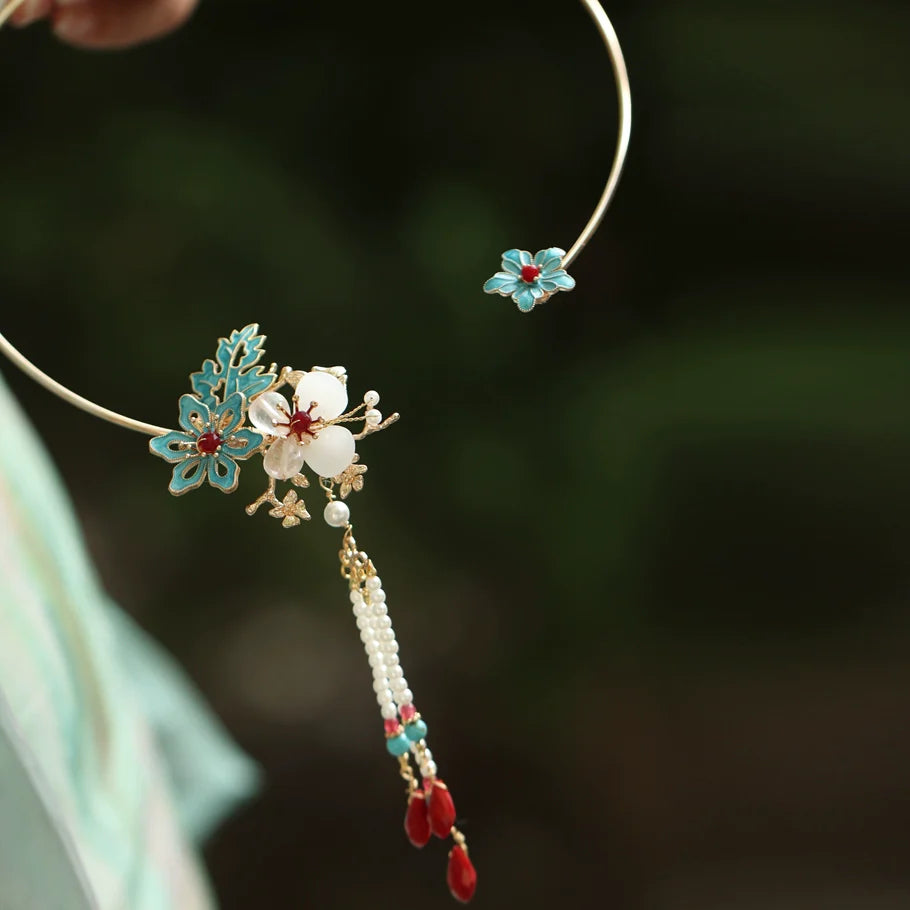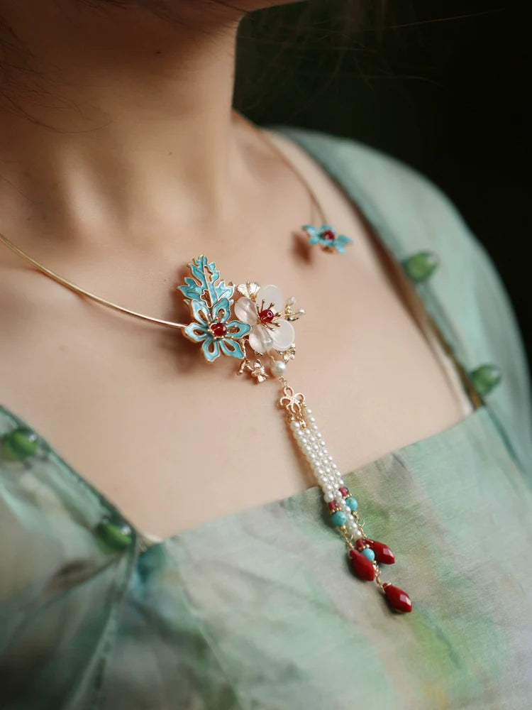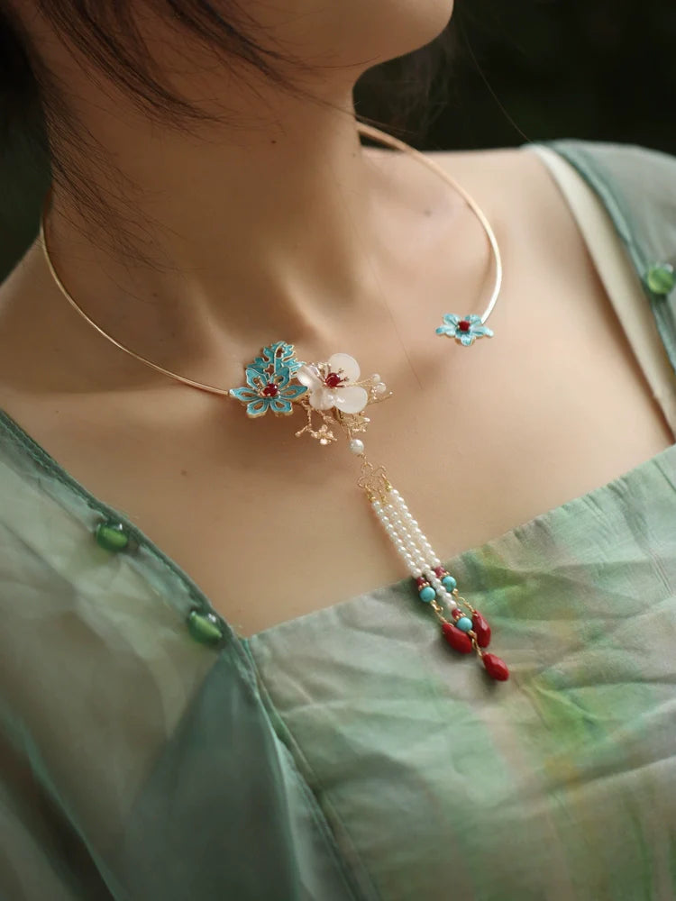 Traditional and modern Chinese-style accessories and costume jewelry, including necklaces, yingluo, and bracelets, perfect for pairing with Hanfu, Cheongsam, and Qipao.