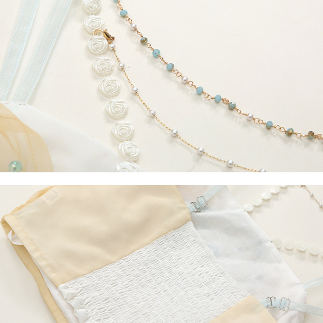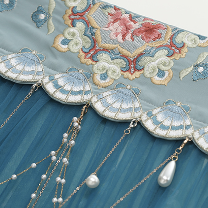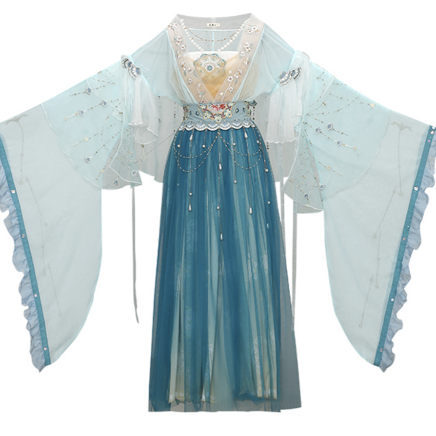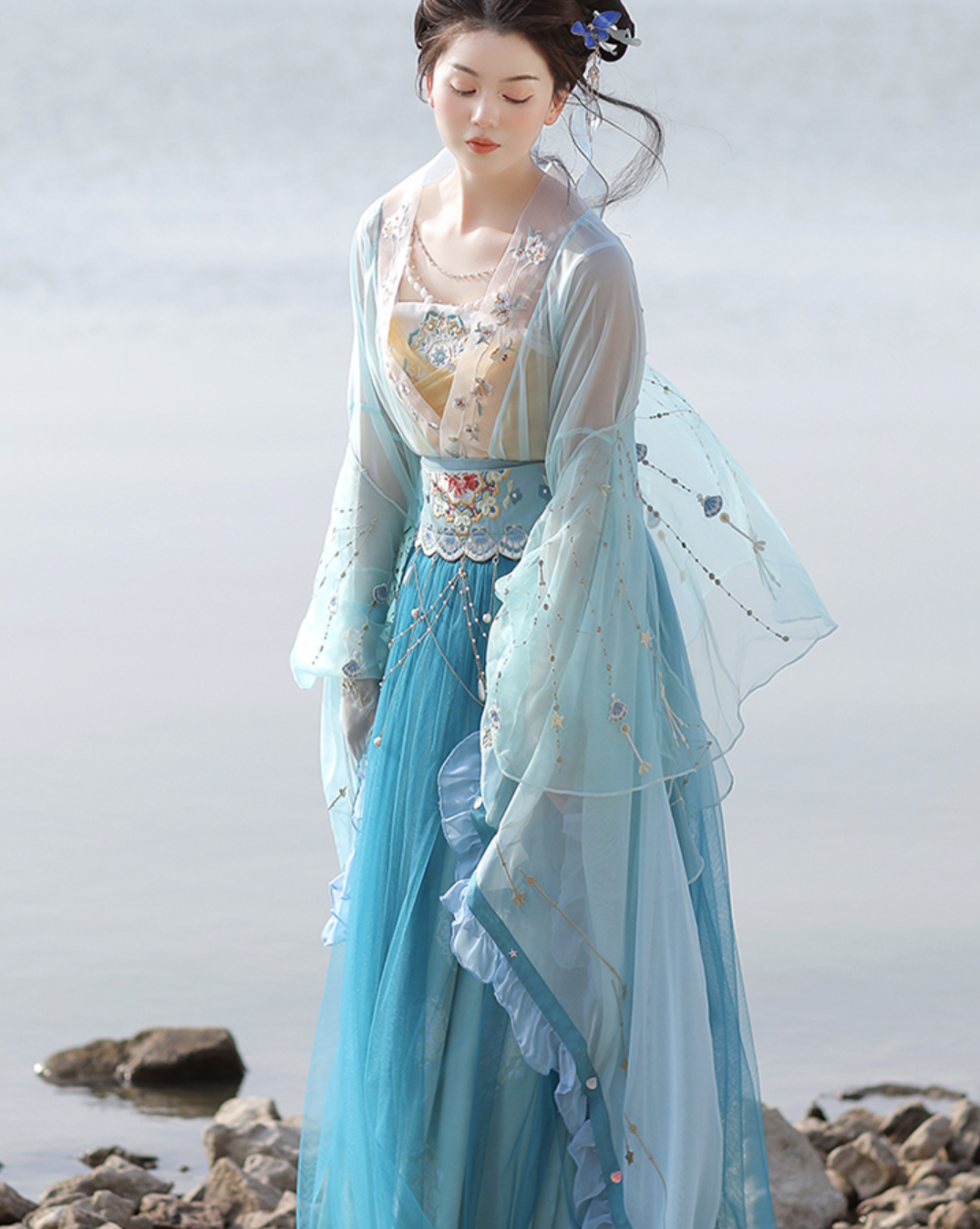 Set include: Cami + Wide Sleeved Blouse + Skirt + Coat + Scarf + Bows