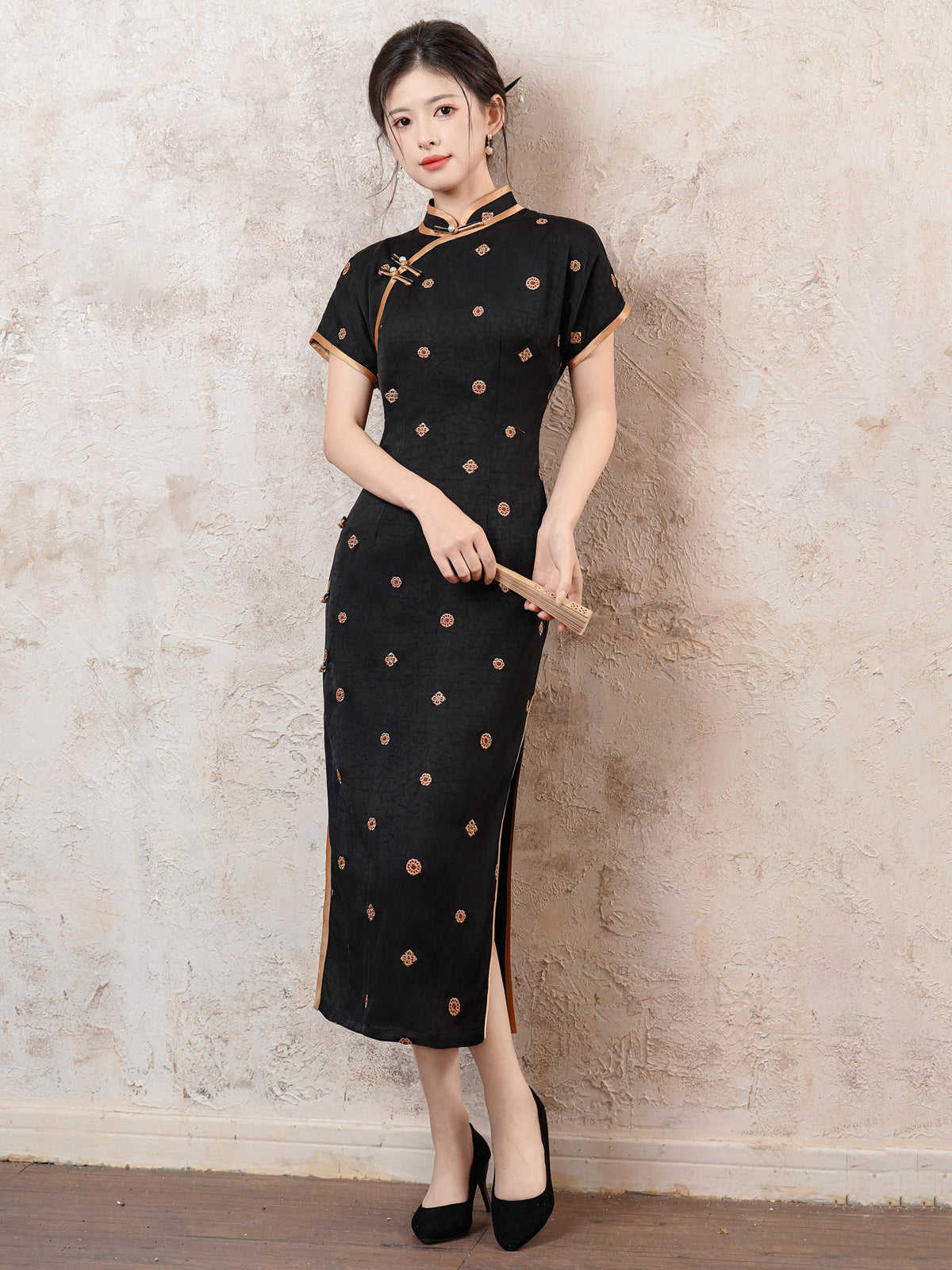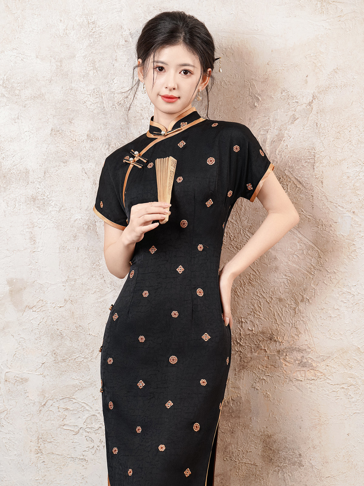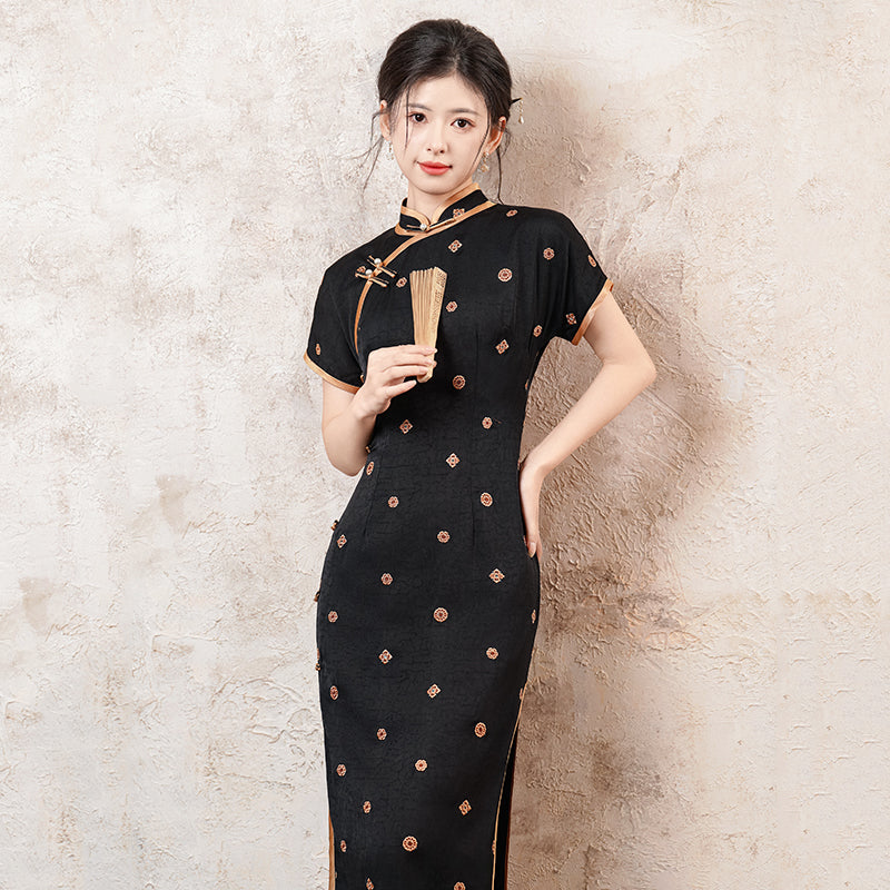 Xuanwen 玄纹 - Short Sleeve Retro Style Long Cheongsam
